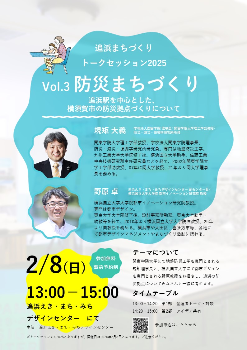 追浜えき・まち・みちデザインセンターでは、2026年も引き続き、追浜まちづくりトークセッションを開催いたします!