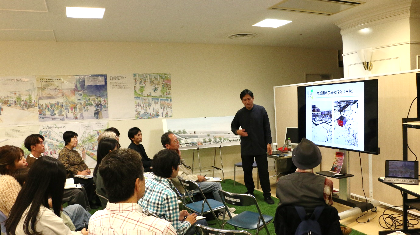 デザインセンターディレクターの芝原は、虎渓用水広場はデザインもこだわり、地域と広場の使い方についての議論も行われたことで、現在多くの方が使いたくなる広場になっているという実感を受けたとのこと。