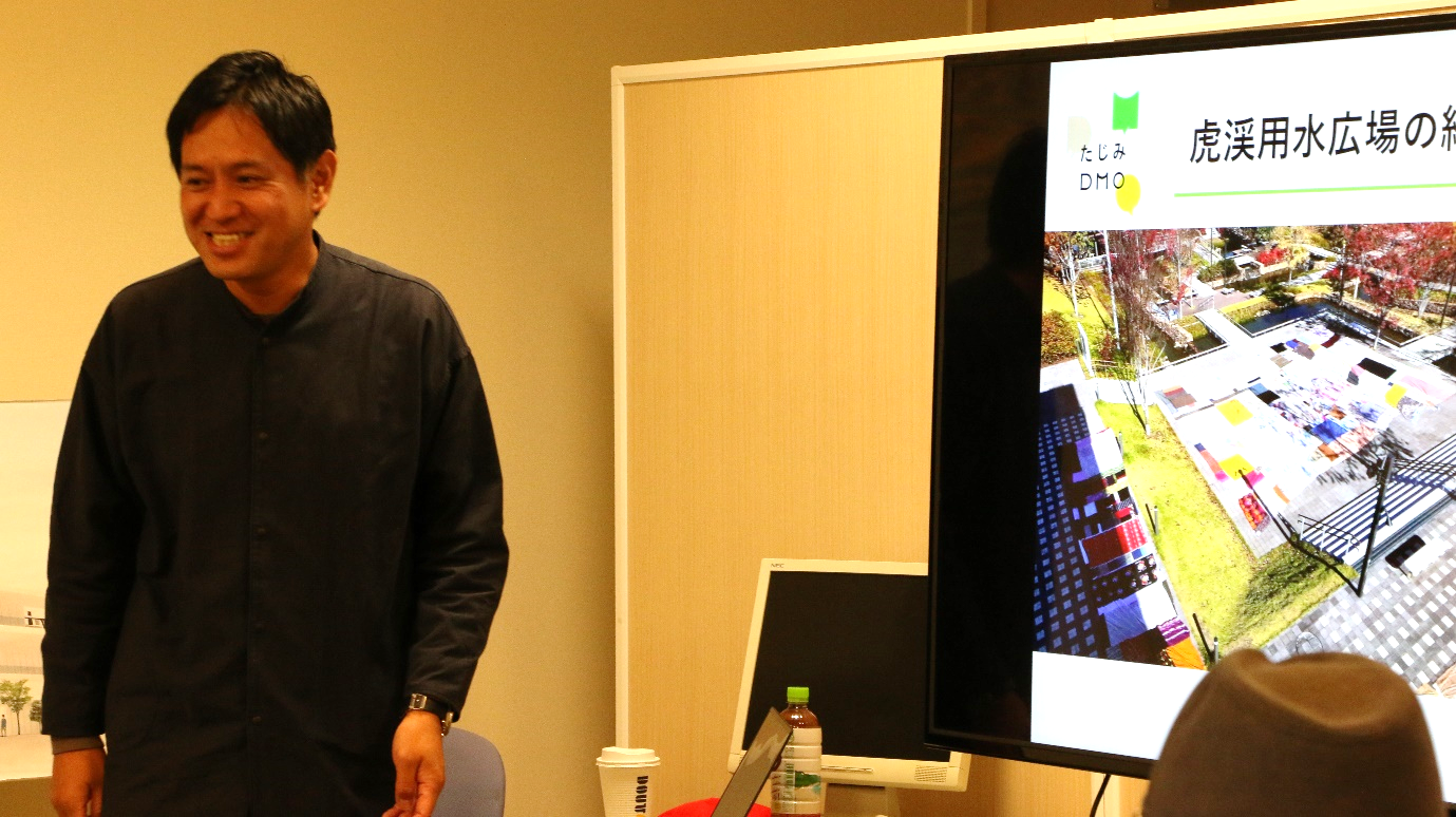 岐阜県多治見市のたじみDMOから小口 英二さまをお呼びし、たじみDMOにて管理・運営されている虎渓用水広場を事例に、「公共空間利活用とまちのにぎわい」をテーマにお話をいただきました。