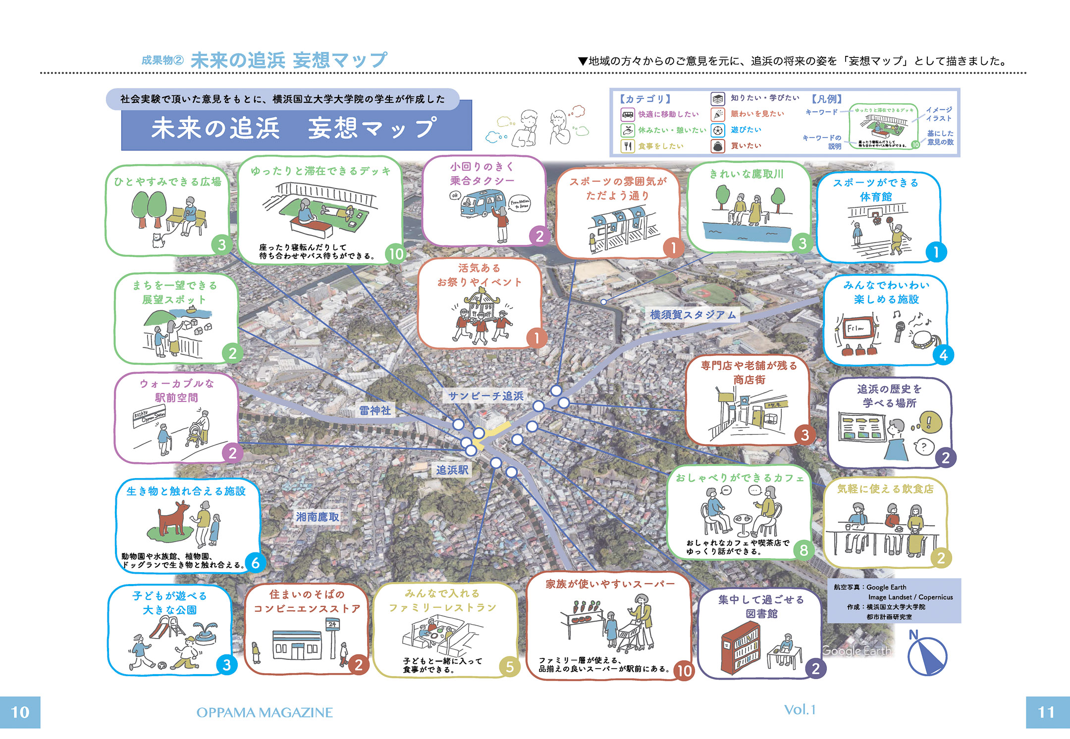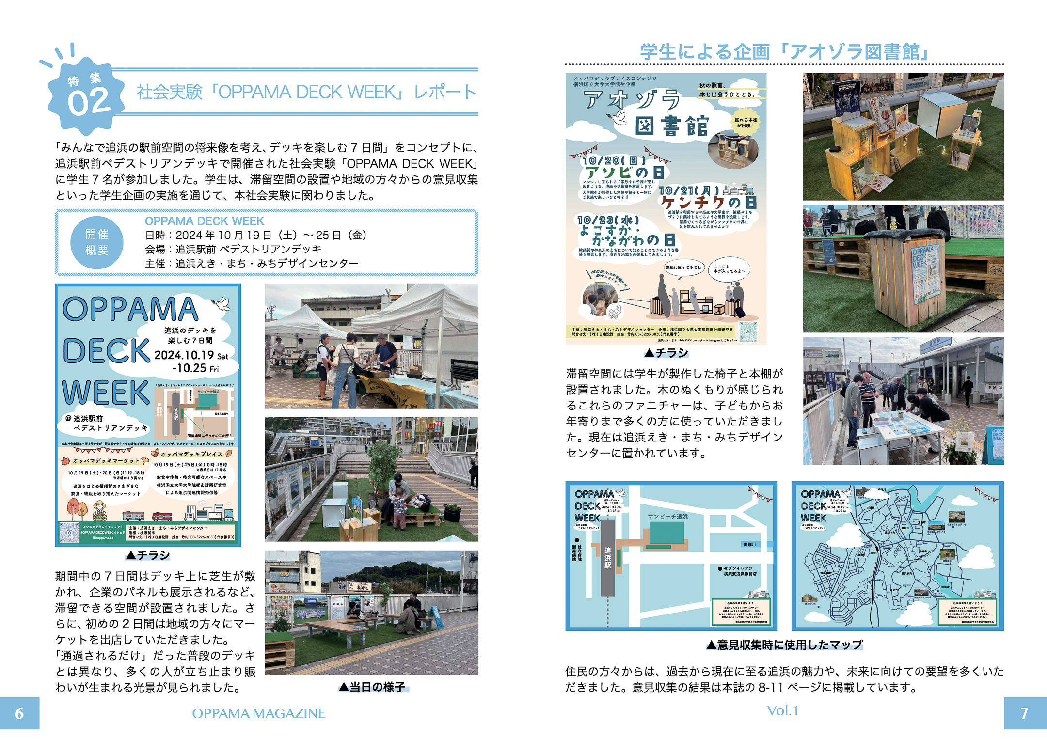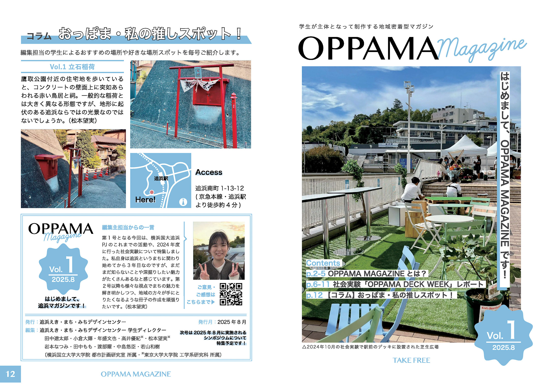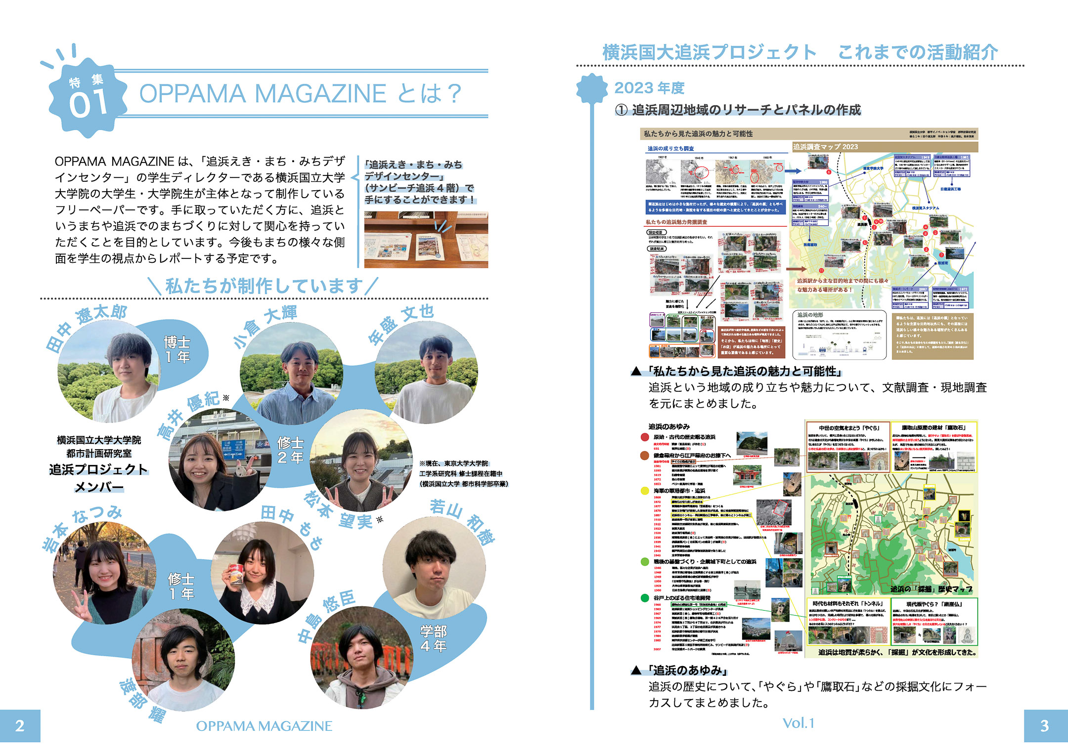「OPPAMA MAGAZINE」は、追浜えき・まち・みちデザインセンターの学生ディレクターである横浜国立大学大学院の学生が主体となって制作しているフリーペーパーです。