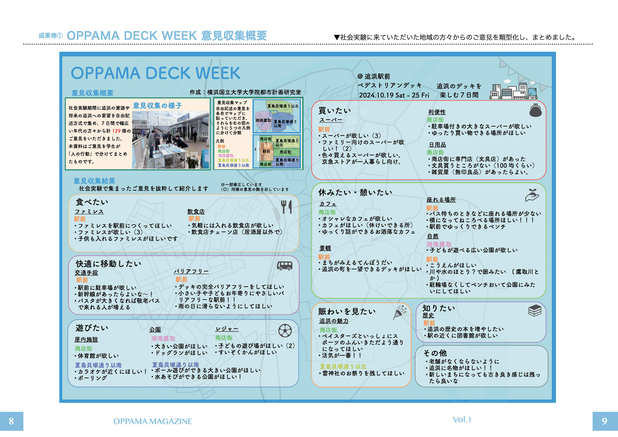 また、2024年度には10月19日(土)~25日(金)に追浜えき・まち・みちデザインセンターの主催による社会実験「OPPAMA DECK WEEK」に参加しました!